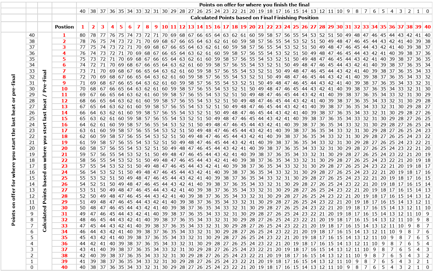 - 5 x Rounds will be 2 x Random grid heats, points from Heat 1 & 2 determines starting grid for 3rd heat, then total points from all 3 heats is where you start the Final.